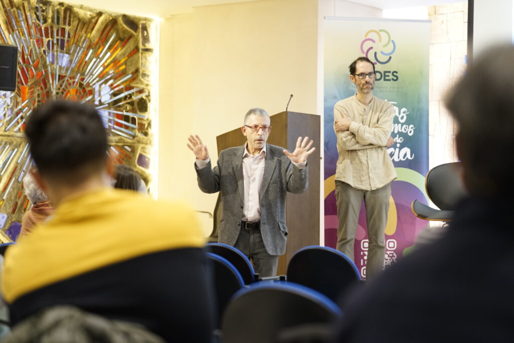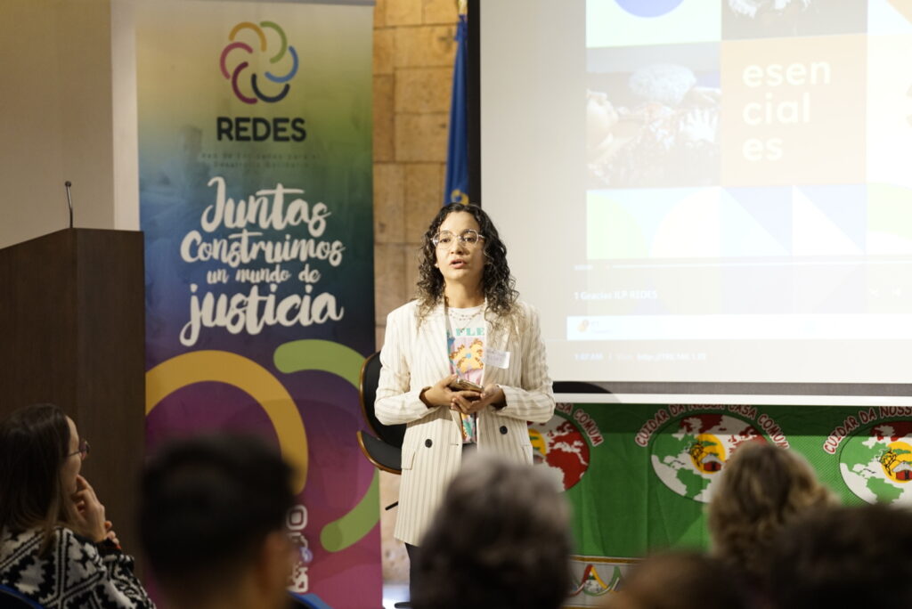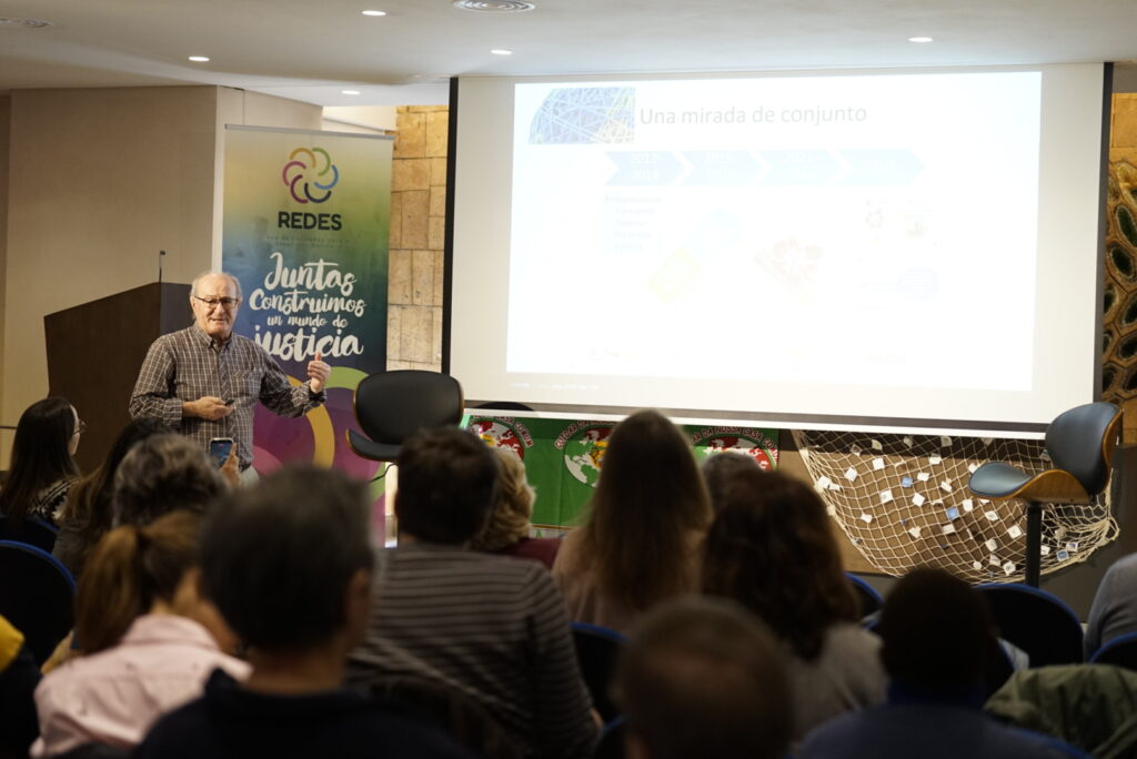 Iniciamos con un aplauso agradecido a todas las entidades que han empujado durante 4 años para llegar al proceso de Regularización extraordinaria de personas migrantes recientemente aprobado. Eduardo Agosta, responsable de Ecología Integral de la CEE, continuó con el saludo a las entidades (foto principal). La llamada de Laudato Si’ nos impulsa a participar en espacios de la sociedad civil junto a las voces de la ciencia y de las entidades sociales, para proponer alternativas ante la crisis climática que sufren especialmente las poblaciones más vulnerables. Después de la COP30 con enorme presencia eclesial, impulsamos la Conferencia de Santa Marta en el próximo abril, en la que un buen número de países se comprometerán a una hoja de ruta concreta de abandono de los combustibles fósiles. Continuó el saludo de Aránzazu Romero, de Futuro en Común, agradeciendo la participación de REDES en la última etapa de su Grupo Motor, en representación de las entidades de justicia global. Fidel García, S. General de Justicia y Paz y miembro del Grupo Motor de Enlázate por la Justicia, nos presentó los mimbres de la campaña que estamos ultimando dentro de esta plataforma eclesial, sobre construcción de paz desde las claves de la justicia social, la ecología integral y la noviolencia. Cerramos este primer bloque con la presentación de las empresas sociales vinculadas a congregaciones presentes en REDES, que promueven la transformación social a través de empresas que buscan el triple impacto (social, económico y ambiental).